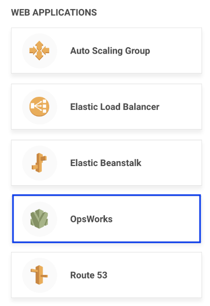 Under Elastigroups, click Create Elastigroup, and choose Opsworks from the use-cases screen.